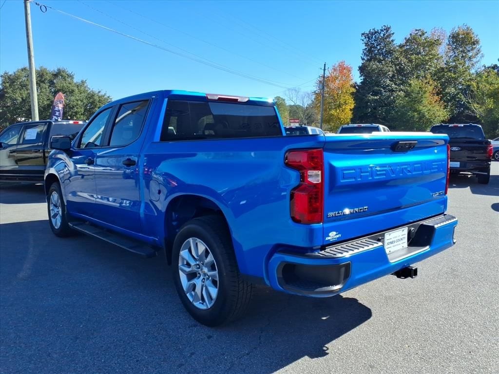 Discover exceptional value with this low-mileage 2025 Chevrolet Silverado 1500 Custom, now available in Trenton, NC. With just 6,975 miles, this RWD pickup features a fuel-efficient 4-cylinder, 2.7L gasoline engine that delivers strong performance and impressive fuel economy for daily driving and worksite tasks. Clean CARFAX report ensures confidence in the vehicle's history and condition. This Chevrolet Silverado Custom is loaded with modern safety and convenience features including Lane Departure Warning, Back-Up Camera, Remote Start, and Hands Free Bluetooth connectivityâ"ideal for commuting, cargo runs, or weekend adventures. The well-maintained interior and exterior reflect careful ownership, while the versatile bed and dependable drivetrain make this truck ready for towing, hauling, or customizing to suit your needs. Priced to sell, this 2025 Chevrolet Silverado 1500 Custom offers the best price in the area for comparable low-mileage modelsâ"don't miss a chance to get superior value without sacrificing quality. Located in Trenton, NC, this vehicle is available for immediate test drives and financing options to fit your budget. Contact us today to schedule an appointment or to learn more about why this Chevrolet Silverado is the smart choice for drivers seeking performance, safety, and savings in one reliable pickup.