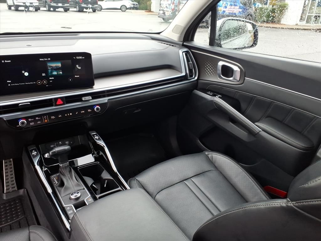 See what's behind you with the back up camera on this unit. Never get into a cold vehicle again with the remote start feature on this Kia Sorento. This Kia Sorento features a hands-free Bluetooth phone system. This 2024 Kia Sorento stays safely in its lane with Lane Keep Assist. This vehicle is a certified CARFAX 1-owner. The leather seats in this 2024 Kia Sorento are a must for buyers looking for comfort, durability, and style. The vehicle comes equipped with Android Auto for seamless smartphone integration on the road. The vehicle employs advanced tech for collision avoidance, enhancing safety on the road. Apple CarPlay: Seamless smartphone integration for this unit - stay connected and entertained on the go! You'll never again be lost in a crowded city or a country region with the navigation system on this Kia Sorento. This vehicle has a clean CARFAX vehicle history report. This vehicle is front wheel drive.