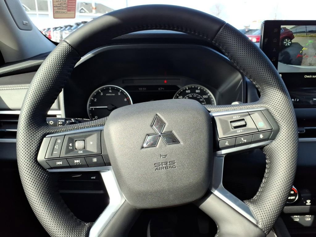 It stays safely in its lane with Lane Keep Assist. The leather seats in this vehicle are a must for buyers looking for comfort, durability, and style. Start the vehicle from inside with remote start. This small suv has auto-adjust speed for safe following. See what's behind you with the back up camera on the vehicle. This 2026 Mitsubishi Outlander features a hands-free Bluetooth phone system. You'll never again be lost in a crowded city or a country region with the navigation system on this model. This Mitsubishi Outlander offers Apple CarPlay for seamless connectivity. This Mitsubishi Outlander offers Android Auto for seamless smartphone integration. It has a 4 Cyl, 1.5L high output engine. Enjoy the convenience of the power liftgate on this model. This Mitsubishi Outlander projects refinement with a racy metallic gray exterior. Maintaining a stable interior temperature in this model is easy with the climate control system.