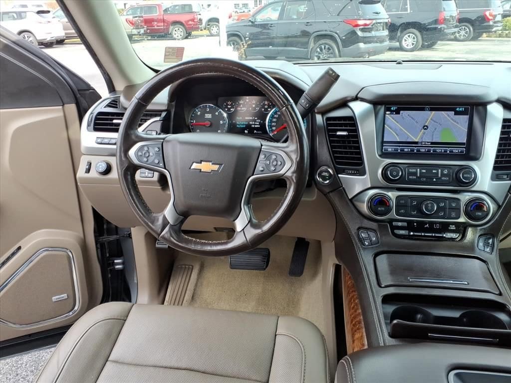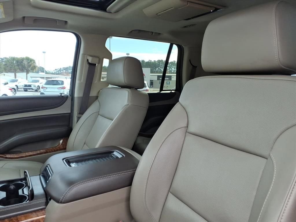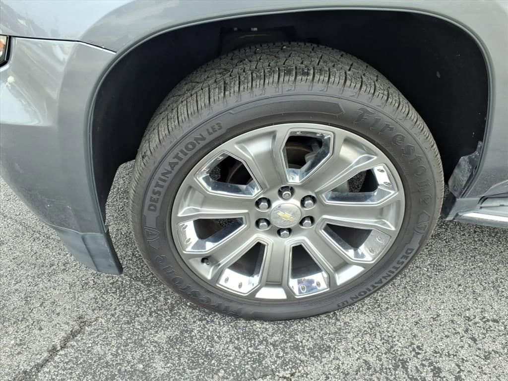 Sun. Entertainment and Destinations Package: Chevrolet MyLink Radio with Navigation/AM/FM Stereo; Rear Seat Blu-Ray/DVD Entertainment System; Power Sunroof. Max Trailering Package: 3.42 Rear Axle Ratio; Integrated Trailer Brake Controller. Preferred Equipment Group 1LZ: Memory Settings; Heated Leather Wrapped Steering Wheel; Perforated Leather-Appointed Seat Trim; Remote Vehicle Start; 3rd Row 60/40 Power Fold Split-Bench; 7. 100 lbs (3. 221 Kgs) GVWR; Front and Rear Park Assist; Floor Console; Front Passenger 6-Way Power Seat Adjuster; OnStar Basic Plan For 5 Years; Chevrolet MyLink Radio with Navigation/AM/FM Stereo; Enhanced Driver Alert Package; Rear Cross-Traffic Alert; Fog Lamps; Driver Inboard and Front Passenger Airbags; Wireless Charging; Universal Home Remote; Color-Keyed Carpeting Floor Covering; Heated 2nd Row Seats; Hands Free Power Liftgate; 1st and 2nd Row Color-Keyed Carpeted Floor Mats; Front Heated Reclining Bucket Seats; Cargo Net; Power-Folding Heated Outside Mirrors; Lane Change Alert with Side Blind Zone Alert; Electronic Cruise Control with Set and Resume Speed; 5 12-Volt Auxiliary Power Outlets; SiriusXM Satellite Radio; Black Assist Steps with Chrome Accent Strip; Heated and Ventilated Driver and Front Passenger Seats; Power Tilt and Telescopic Steering Column; Roof-Mounted Luggage Rack Side Rails; Passive Entry System; Bose Centerpoint Premium 10-Speaker Surround Sound; Magnetic Ride Control Suspension Package; SiriusXM NavTraffic; Auto-Dimming Inside Rearview Mirror; Power-Adjustable Accelerator and Brake Pedals; Push Button Keyless Start; Power Release 2nd Row Bucket Seats; 4-Wheel Antilock Disc Brakes with Brake Assist. Enhanced Driver Information Center: Head-Up Display. 22" 7-Spoke Silver Wheels with Chrome Inserts. Rear Seat Blu-Ray/DVD Entertainment System. Power Sunroof. Adaptive Cruise Control. Cargo Security Shade. Polished Exhaust Tip. **Equipment listed is based on original vehicle build and subject to change. Please confirm the accuracy of the included equipment by calling the dealer prior to purchase.**
