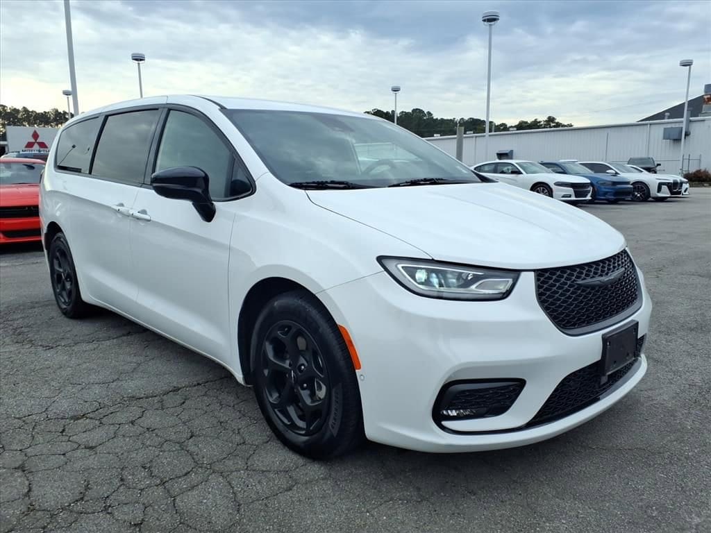 2024 Chrysler Pacifica Hybrid S Appearance Pkg Jacksonville, NC. This well-maintained plug-in hybrid minivan pairs a V6, 3.6L engine with an efficient electric drive for smooth performance and impressive fuel savings. Featuring front-wheel drive and advanced hybrid technology, this Chrysler Pacifica Hybrid delivers responsive acceleration, quiet operation, and the flexibility of electric-only driving for short commutes. Comfort and convenience are highlighted by premium leather seats, remote start for easy climate control, and a user-friendly infotainment system with Android Auto integration. Safety is supported by a Back-Up Camera for confident parking and maneuvering, plus a CARFAX Clean Report confirming a reliable history. The S Appearance Package adds sporty exterior cues and refined interior touches that elevate daily driving and family road trips. Practical features include spacious seating and versatile cargo options, making this Chrysler Pacifica ideal for families, commuters, and anyone seeking eco-conscious driving without sacrificing capability. Located in Jacksonville, NC, this 2024 Chrysler Pacifica Hybrid is competitively priced we offer the best price for a vehicle of this quality and specification. Schedule a test drive or contact us for details on financing, incentives, and available warranties. Experience the efficiency, comfort, and value of this Chrysler Pacifica Hybrid in person today.