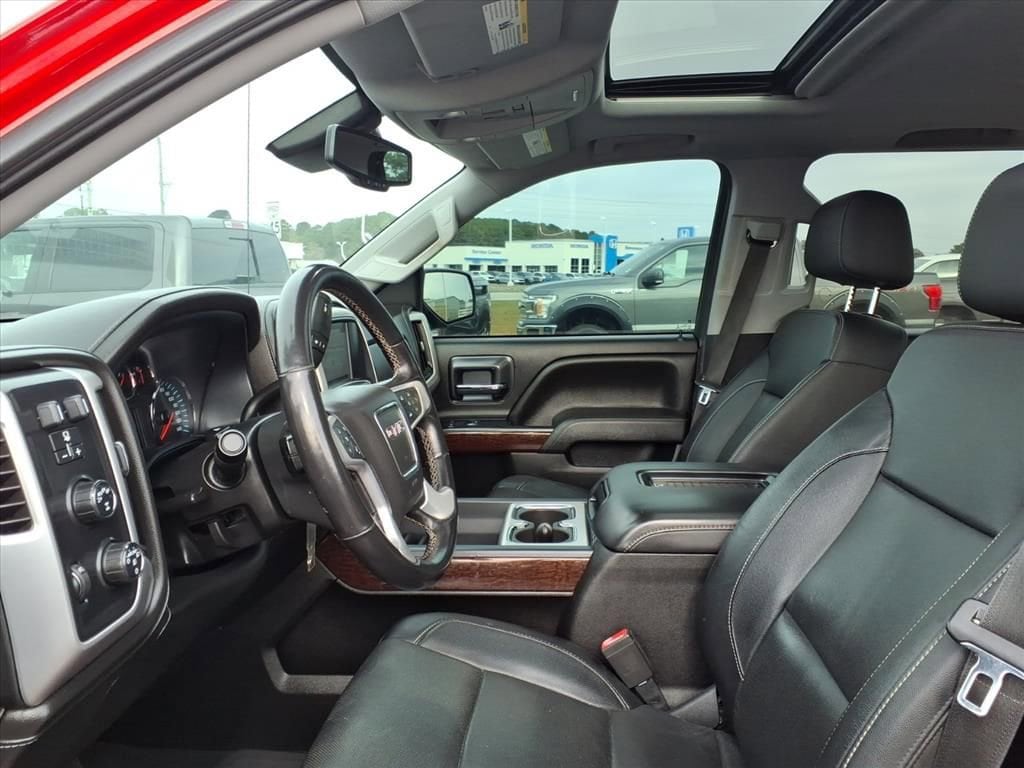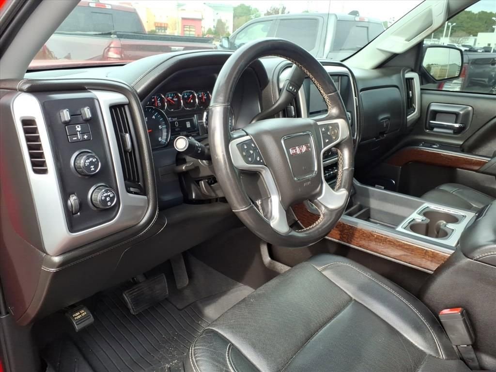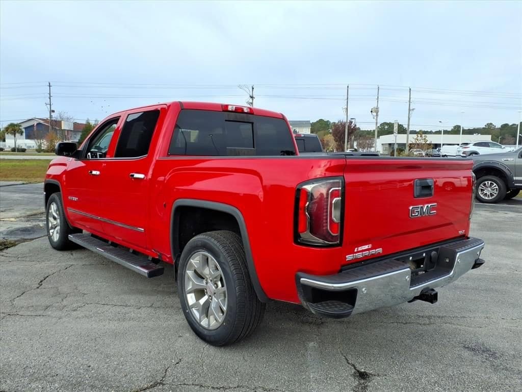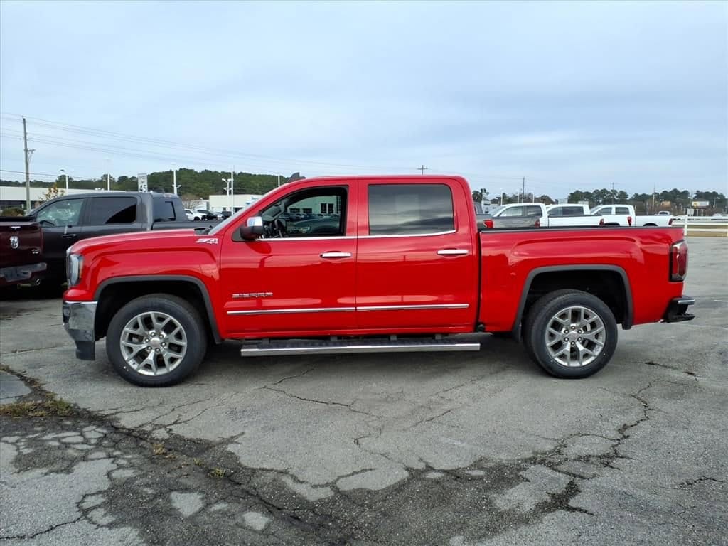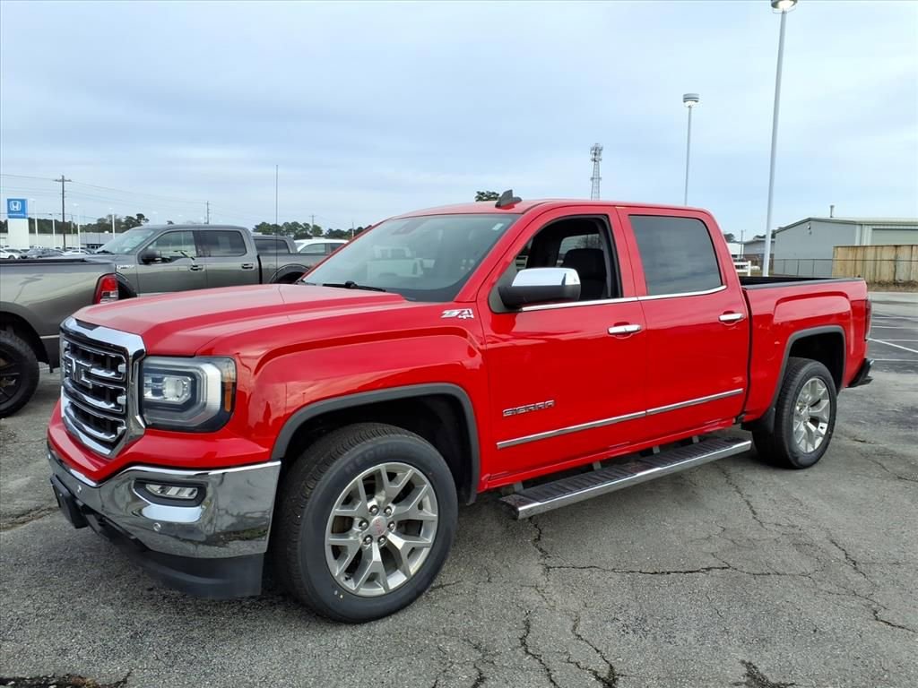 2018 GMC Sierra 1500 SLT 4WD powerful V8 performance and premium comfort at the best price in Jacksonville, NC. This rugged 5.3L V8 gasoline pickup pairs impressive towing capability with refined interior amenities, making it ideal for work, weekend adventures, or daily driving. The SLT trim delivers leather seats and a carefully appointed cabin that keeps you comfortable on long hauls while the 4WD system and Off-Road Package provide confidence when the pavement ends. Technology and safety are well-covered: a built-in navigation system guides you on unfamiliar routes, while the back-up camera and rear parking sensors make parking and hitching a trailer easier and safer. The combination of modern convenience features and durable engineering means you get a versatile truck ready for any task. Mechanically sound and ready to go, this GMC Sierra 1500 has been maintained to deliver dependable V8 power and the capability expected from GMC's lineup. Whether you need heavy-duty performance for towing, dependable off-road capability, or a premium daily driver with leather seating, this truck checks all the boxes. Located in Jacksonville, NC, this 2018 GMC Sierra 1500 SLT 4WD with the 5.3L V8 offers top value and the best price in the area don't miss your chance to own a powerful, well-equipped pickup that combines comfort, tech, and capability. Schedule a test drive today.