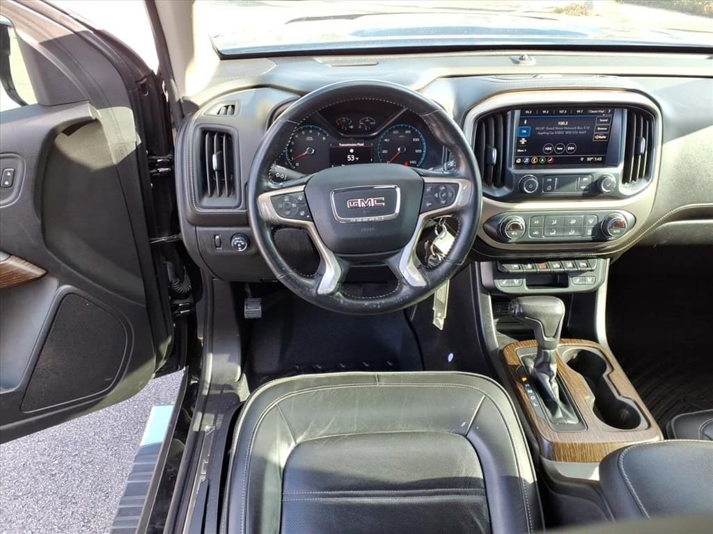 This small pickup comes equipped with Android Auto for seamless smartphone integration on the road. See what's behind you with the back up camera on this vehicle. The leather seats in the vehicle are a must for buyers looking for comfort, durability, and style. You'll never again be lost in a crowded city or a country region with the navigation system on this 2019 GMC Canyon . This GMC Canyon keeps you comfortable with Auto Climate. This small pickup is pure luxury with a heated steering wheel. This model offers Apple CarPlay for seamless connectivity. This unit features a hands-free Bluetooth phone system. This model's Lane Departure Warning keeps you safe by alerting you when you drift from your lane. Never get into a cold vehicle again with the remote start feature on it. The rear parking assist technology on this model will put you at ease when reversing. The system alerts you as you get closer to an obstruction.