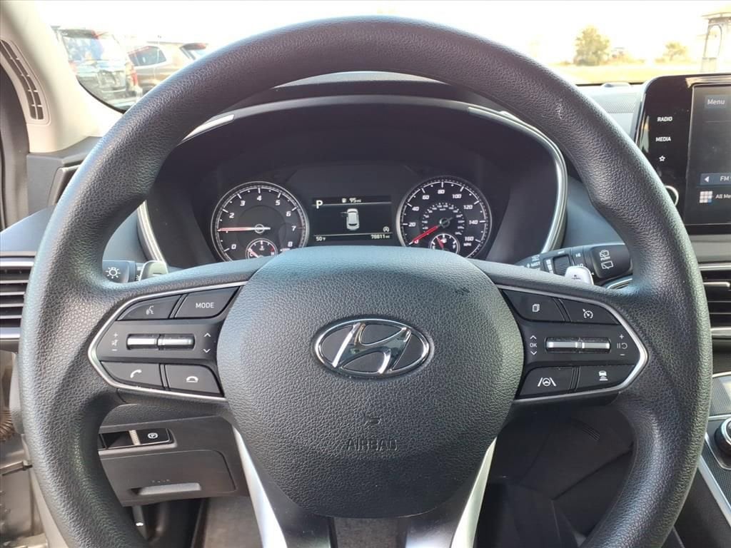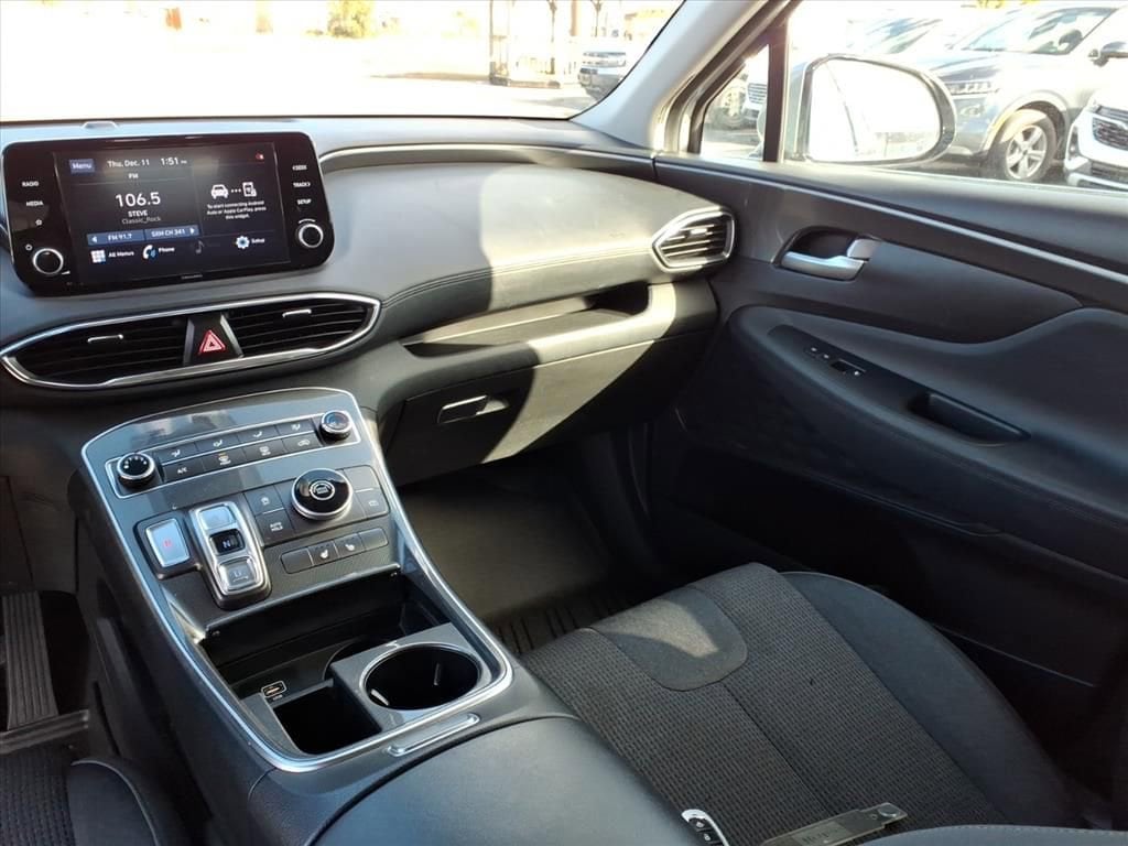 It features a hands-free Bluetooth phone system. Apple CarPlay: Seamless smartphone integration for this model - stay connected and entertained on the go! This 2021 Hyundai Santa Fe stays safely in its lane with Lane Keep Assist. Never get into a cold vehicle again with the remote start feature on this Hyundai Santa Fe. Protect this model from unwanted accidents with a cutting edge backup camera system. This model comes equipped with Android Auto for seamless smartphone integration on the road. This vehicle shines with an exquisite metallic silver exterior finish. This 2021 Hyundai Santa Fe has a 4 Cyl, 2.5L high output engine. Quickly unlock the Hyundai Santa Fe with keyless entry. This unit is front wheel drive. Set the temperature exactly where you are most comfortable in the Hyundai Santa Fe. The fan speed and temperature will automatically adjust to maintain your preferred zone climate. Electronic Stability Control is one of many advanced safety features on this 2021 Hyundai Santa Fe .