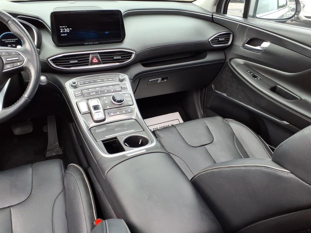 This model employs advanced tech for collision avoidance, enhancing safety on the road. Start this mid-size suv from inside with remote start. This vehicle is a certified CARFAX 1-owner. This 2023 Hyundai Santa Fe Plug-In Hybrid offers Android Auto for seamless smartphone integration. Lane Keep Assist in this unit helps maintain safe driving by gently steering to stay within the lane. This 2023 Hyundai Santa Fe Plug-In Hybrid offers Apple CarPlay for seamless connectivity. This mid-size suv is pure luxury with a heated steering wheel. This mid-size suv offers Automatic Climate Control for personalized comfort. Protect this vehicle from unwanted accidents with a cutting edge backup camera system. The installed navigation system will keep you on the right path. Bluetooth technology is built into the vehicle, keeping your hands on the steering wheel and your focus on the road. The leather seats in this mid-size suv are a must for buyers looking for comfort, durability, and style.