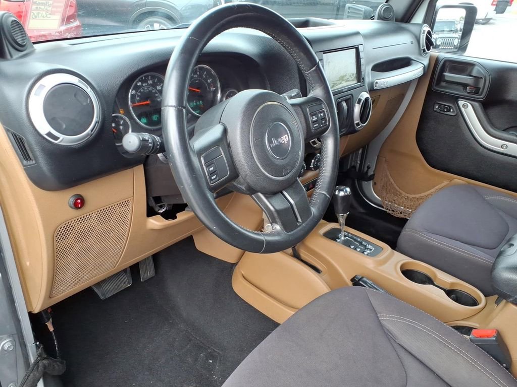 The installed navigation system will keep you on the right path. Our dealership has already run the CARFAX report and it is clean. A clean CARFAX is a great asset for resale value in the future. This unit offers Automatic Climate Control for personalized comfort. Bluetooth technology is built into this 2013 Jeep Wrangler , keeping your hands on the steering wheel and your focus on the road. Never get into a cold vehicle again with the remote start feature on this mid-size suv. Maintaining a stable interior temperature in this vehicle is easy with the climate control system. When you encounter slick or muddy roads, you can engage the four wheel drive on the Jeep Wrangler and drive with confidence. The vehicle shines with an exquisite metallic silver exterior finish. This Jeep Wrangler has a V6, 3.6L high output engine. The vehicle features cruise control for long trips. The high efficiency automatic transmission shifts smoothly and allows you to relax while driving.