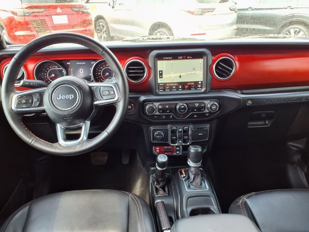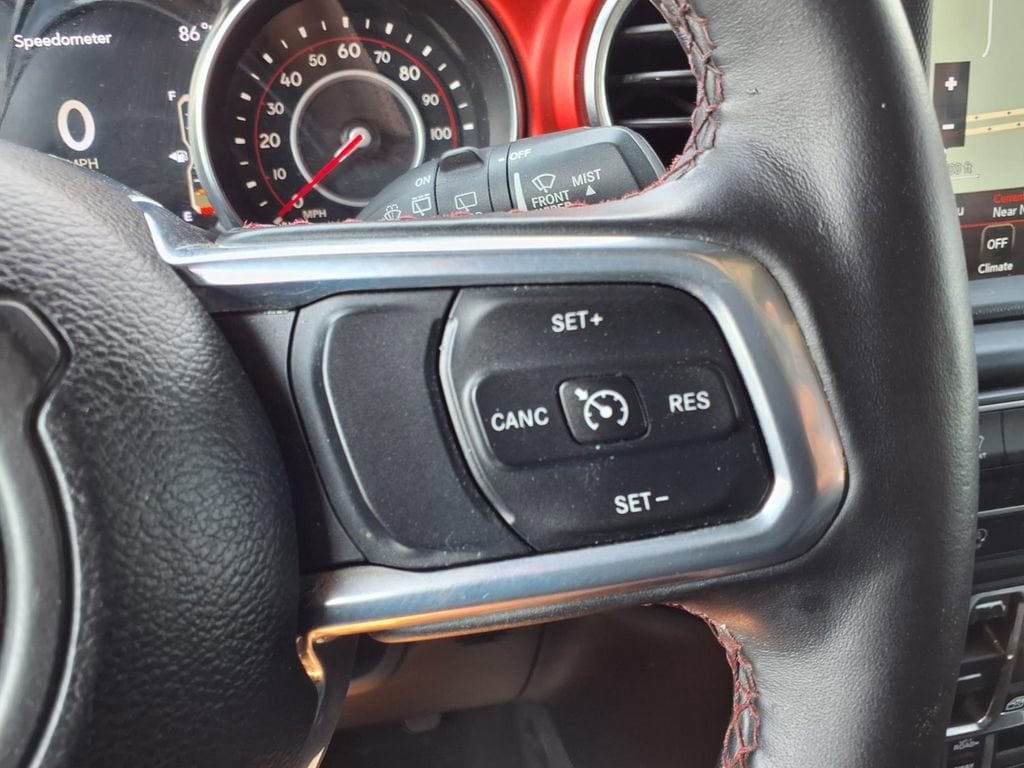 Cold Weather Group: Remote Start System; Heated Front Seats; Heated Steering Wheel. Quick Order Package 22R. 8.4" Radio and Premium Audio Group: Off-Road Info Pages; SiriusXM Traffic Plus; Alpine Premium Audio System; HD Radio; Uconnect 4C Navigation Radio with 8.4" Display; For Details. Visit DriveUconnect.com; Rear View Auto Dim Mirror; 1-Year SiriusXM Guardian Trial; 5-Year SiriusXM Travel Link Service; GPS Navigation; 5-Year SiriusXM Traffic Service; SiriusXM Travel Link; 4G LTE Wi-Fi Hot Spot; Emergency/assistance Call; 8.4" Touchscreen Display. Leather Trimmed Bucket Seats. Black 3-Piece Hard Top. Alpine Premium Audio System. 17" X 7.5" Black with Machined Lip. Remote Proximity Keyless Entry. MOPAR Hardtop Headliner. Remote Start System. Granite Crystal Met CC. Granite Crystal Met CC. MOPAR All-Weather Floor Mats. **Equipment listed is based on original vehicle build and subject to change. Please confirm the accuracy of the included equipment by calling the dealer prior to purchase.**