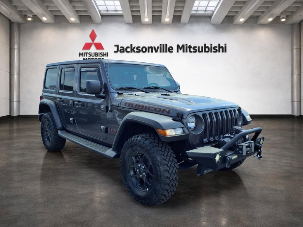 Conquer every road in confidence with this 2021 Jeep Wrangler Unlimited Rubicon, a rugged 4WD SUV powered by a fuel-efficient 2.0L 4-cylinder gasoline engine. Located in Jacksonville, NC, this Jeep Wrangler Unlimited Rubicon pairs trail-ready capability with premium comfort and tech perfect for weekend adventures or daily driving. This Rubicon features heated leather seats and a heated steering wheel for year-round comfort. Enjoy crystal-clear entertainment and navigation with XM Radio and built-in navigation, keeping you connected and on course wherever you roam. Remote start adds convenience for cold mornings or hot afternoons, and the Rubicon's legendary off-road hardware delivers superior traction and durability on any terrain. You'll find this 2021 Jeep Wrangler Unlimited Rubicon priced to sell the best price in Jacksonville, NC offering outstanding value compared to similar listings. The iconic Jeep Wrangler profile, removable top and doors, and heavy-duty suspension make it a true driver's vehicle, ready for beach trips, backroads, and city streets alike. Don't miss your chance to own a capable, comfortable, and well-equipped Rubicon with premium features and proven performance. Contact us today to schedule a test drive in Jacksonville, NC, and experience why this Jeep Wrangler Unlimited Rubicon stands out as the best-priced option in the area.