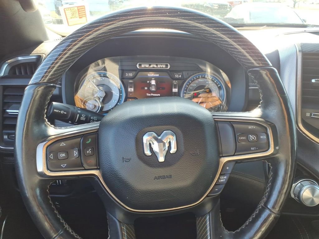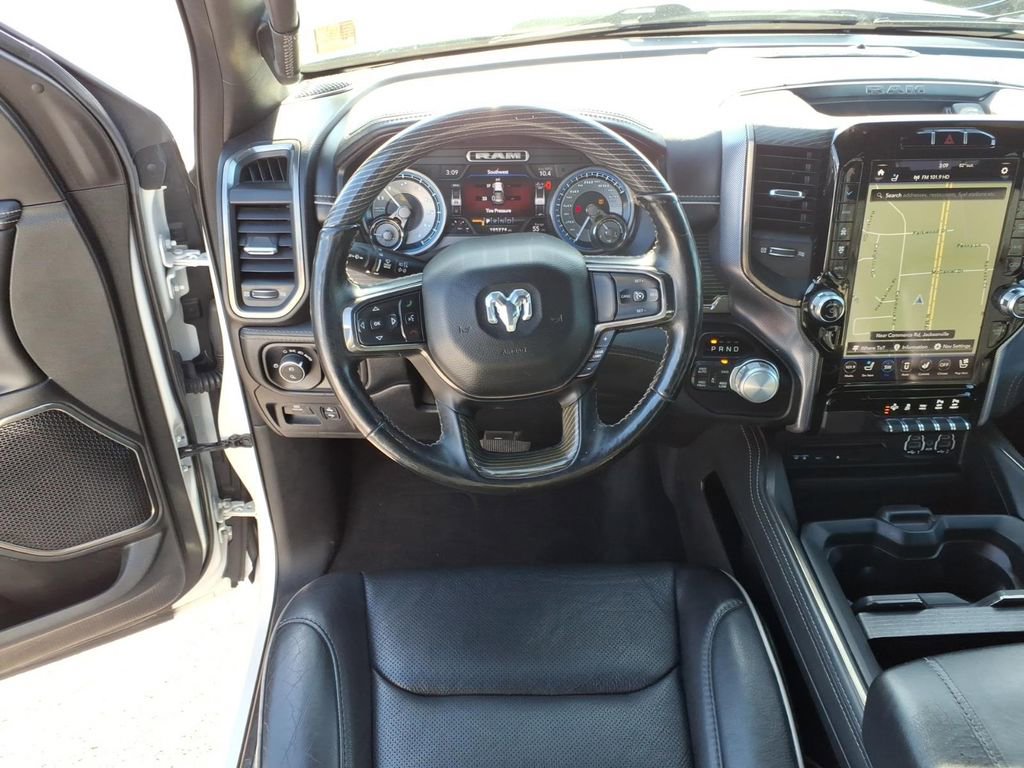 Apple CarPlay: Seamless smartphone integration for this unit - stay connected and entertained on the go! The vehicle is equipped with the latest generation of XM/Sirius Radio. The installed navigation system will keep you on the right path. This 1/2 ton pickup comes equipped with Android Auto for seamless smartphone integration on the road. See what's behind you with the back up camera on the vehicle. Keep your hands warm all winter with a heated steering wheel in this Ram 1500 . Bluetooth technology is built into this unit, keeping your hands on the steering wheel and your focus on the road. The state of the art park assist system will guide you easily into any spot. The Ram 1500 keeps you comfortable with Auto Climate. Never get into a cold vehicle again with the remote start feature on this Ram 1500. The leather seats in the Ram 1500 are a must for buyers looking for comfort, durability, and style.