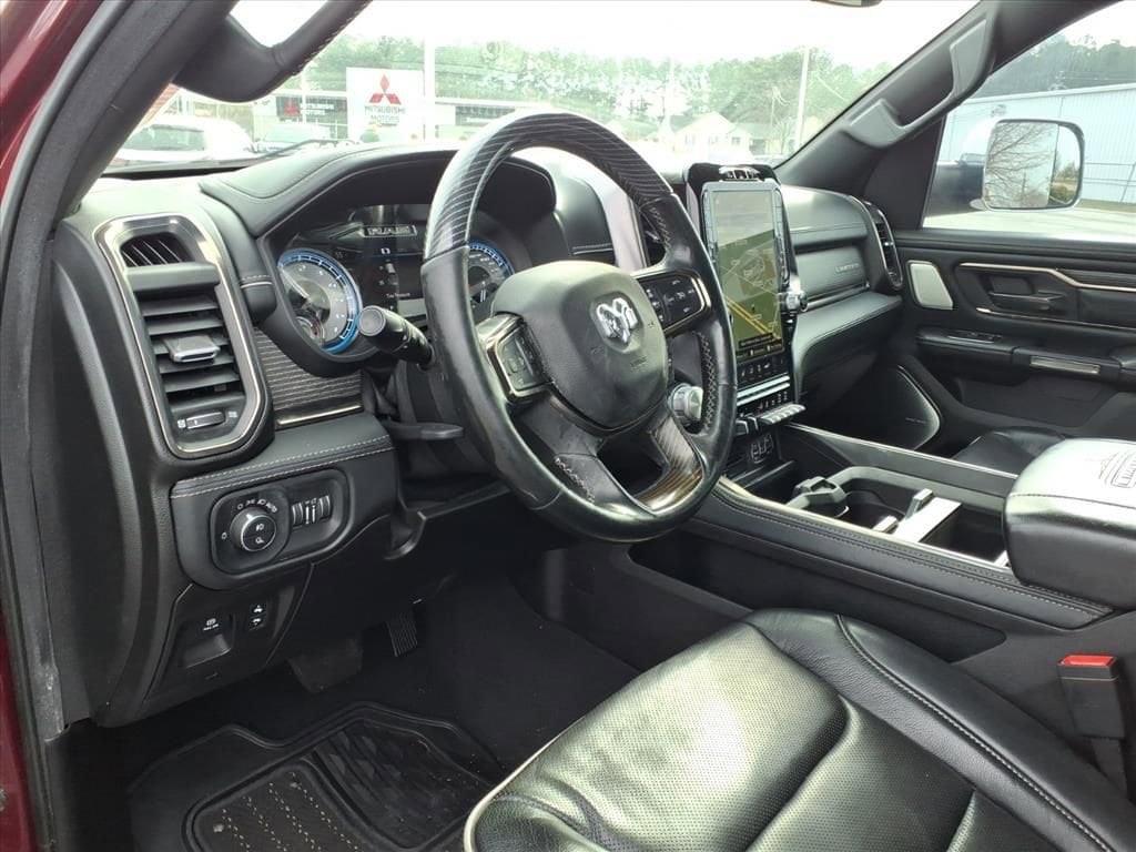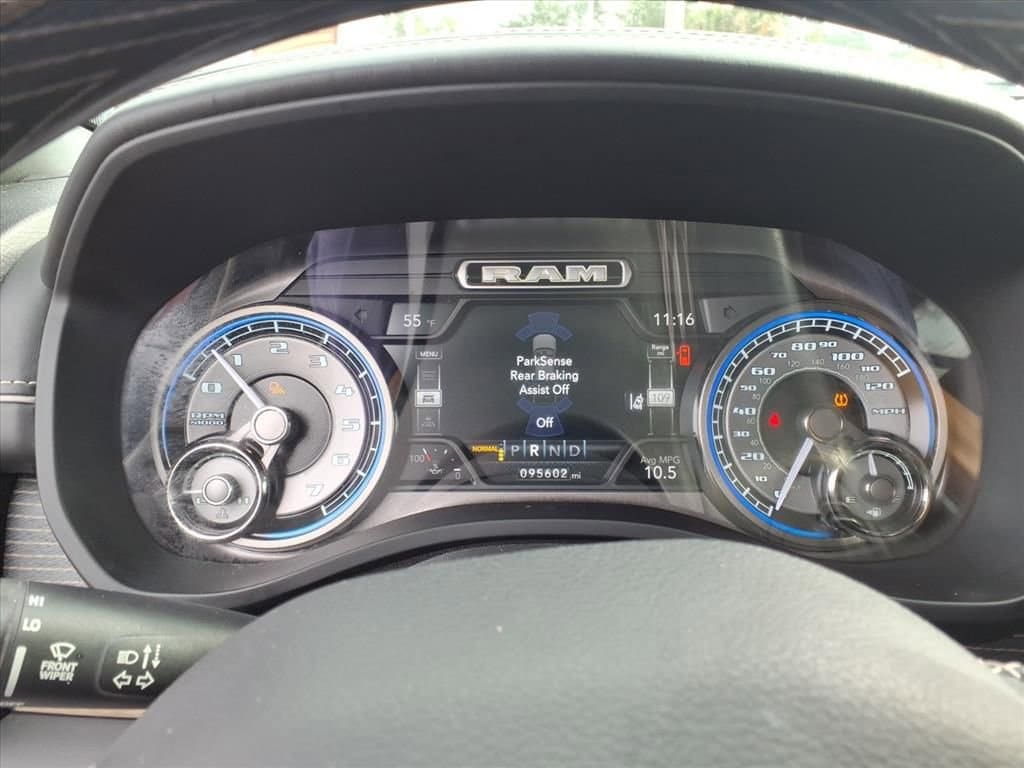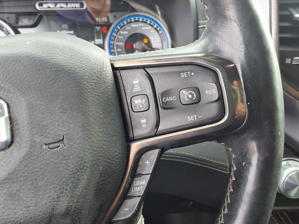 Start this 1/2 ton pickup from inside with remote start. This model has automated speed control that adjusts to maintain a safe following distance, enhancing highway driving convenience. The Ram 1500 comes equipped with Android Auto for seamless smartphone integration on the road. The leather seats in the Ram 1500 are a must for buyers looking for comfort, durability, and style. with XM/Sirus Satellite Radio you are no longer restricted by poor quality local radio stations while driving this vehicle. Anywhere on the planet, you will have hundreds of digital stations to choose from. This 1/2 ton pickup's Forward Collision Warning feature alerts drivers to potential front-end collisions. The vehicle's Lane Departure Warning helps keep you in your lane. This 1/2 ton pickup is pure luxury with a heated steering wheel. It stays safely in its lane with Lane Keep Assist. Bluetooth technology is built into it, keeping your hands on the steering wheel and your focus on the road.