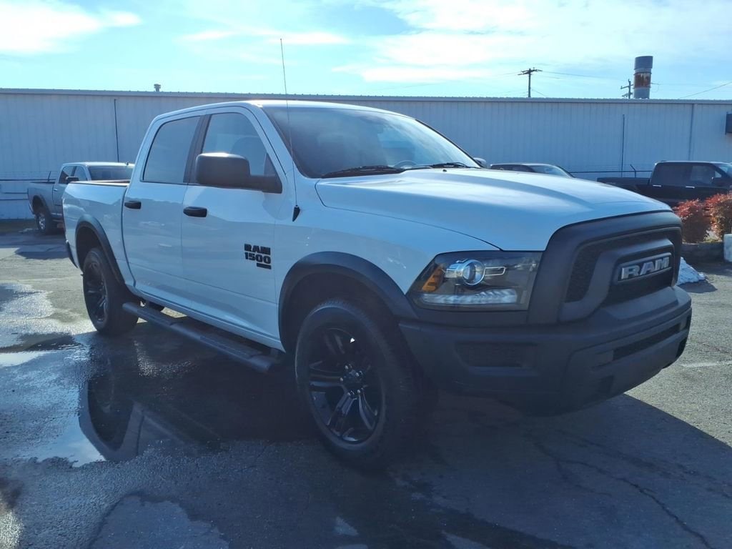 2023 Ram 1500 Classic Warlock 4WD Jacksonville NC This 2023 Ram 1500 Classic Warlock with 4WD and the efficient 3.6L V6 Gasoline/E85 engine delivers rugged capability and modern convenience at the best price in Jacksonville, NC. With a CARFAX 1-Owner history and a CARFAX Clean Report, this Ram provides reassurance and value for buyers seeking a reliable workhorse or weekend rig. The Warlock appearance package adds aggressive styling, blacked-out accents, and durable features that stand out on and off the road. Comfort and technology are well-equipped: Hands Free Bluetooth keeps you connected safely while on the move, and the Back-Up Camera plus Rear Parking Sensors make maneuvering and towing easier in tight spaces. Interior features blend utilitarian durability with driver-focused ergonomics, offering practical storage and comfortable seating for daily tasks. Mechanically sound and ready for Carolina roads, the 4WD system boosts traction for inclement weather and light off-road excursions. The V6 3.6L engine balances power and fuel flexibility with E85 capability, providing versatile fueling options. This Ram 1500 Classic Warlock represents a smart combination of capability, safety features, and documented history backed by CARFAX verification. Located in Jacksonville, NC, this truck is priced competitively and advertised as the best value in the area. Schedule a test drive today to experience the performance and features in person.